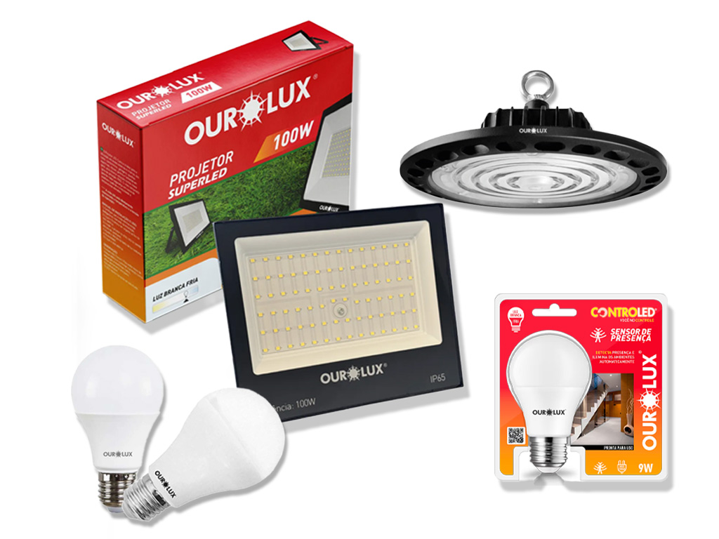 A Ourolux oferece soluções de iluminação industrial de alta performance, combinando eficiência energética e durabilidade. Nossa linha inclui Lâmpadas Bulbo LED, Refletores IP65 para ambientes externos e internos, Luminárias High Bay LED para grandes áreas e Lâmpadas SuperLED de Alta Potência para aplicações exigentes. Com a Ourolux, você garante uma iluminação eficiente, duradoura e econômica para a sua indústria.